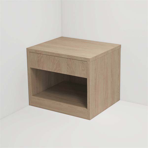 床头柜 整体实木多层板贴科技木皮 白色人造石台面