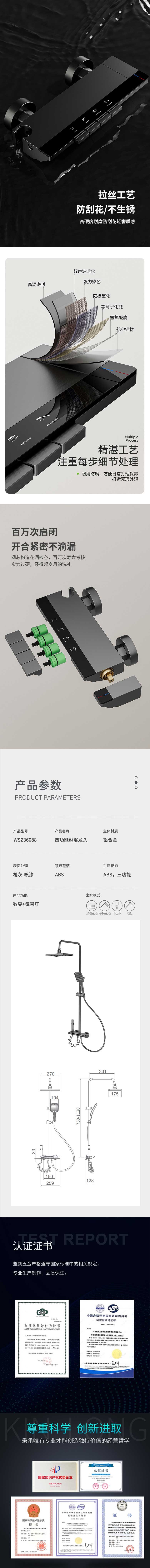 斯飞奥恒温两功能淋浴套装 黄铜 铬色 ABS花洒座 ABS多功能手持 T2051ZS