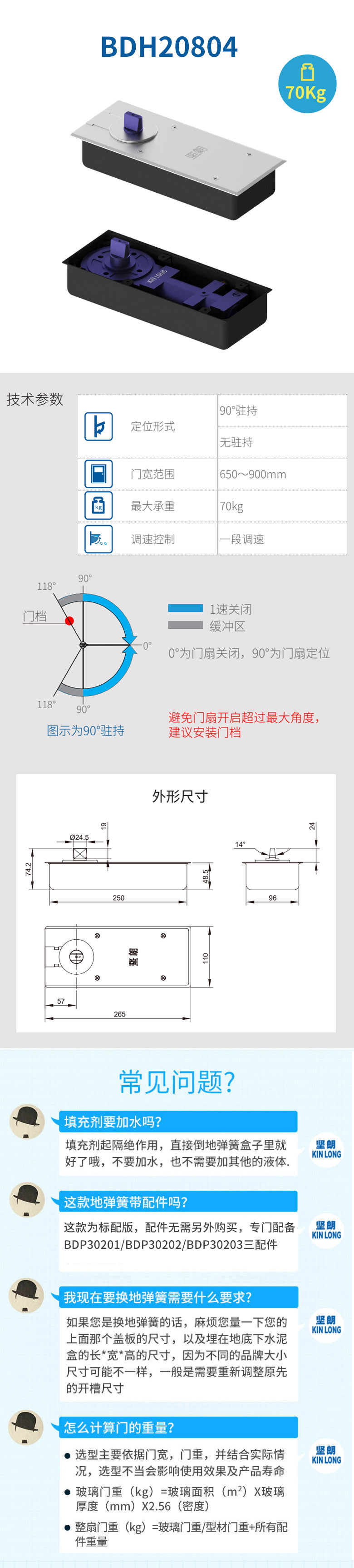 地弹簧 BDH20804/14° 盖板不锈钢 400#拉丝 无驻持 中文 配BDP30201/BDP30202/BDP30203