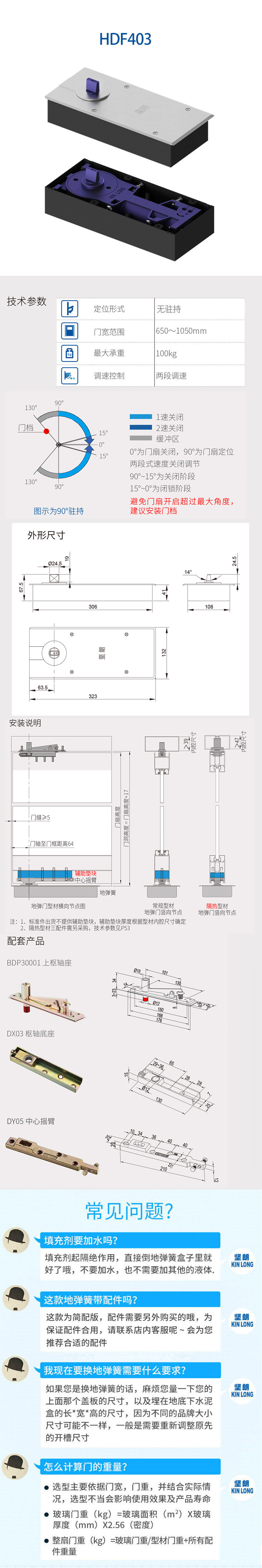 地弹簧 HDF101/6° 盖板不锈钢 400#拉丝 无驻持 英文 不含三配件