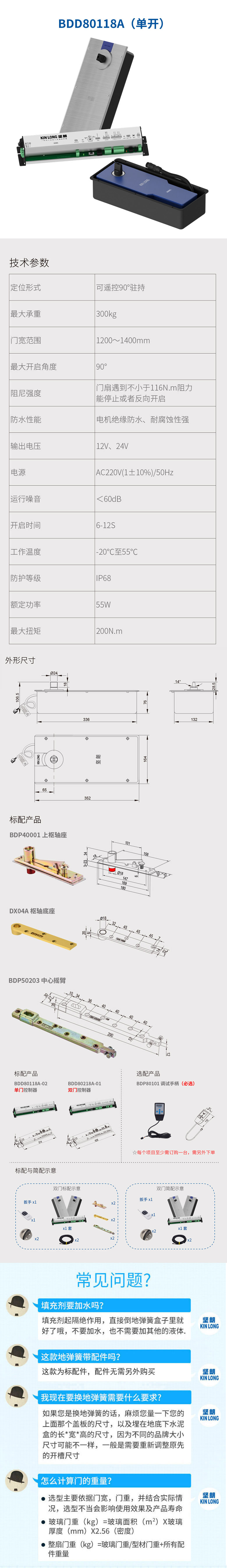 电动地弹簧 盖板不锈钢 400#拉丝 中文/配BDP40001/DX04A/BDP50203/双开门/一拖二/每项目至少1套调试手柄BDP80101,另下单 FB BDD80218A/14°