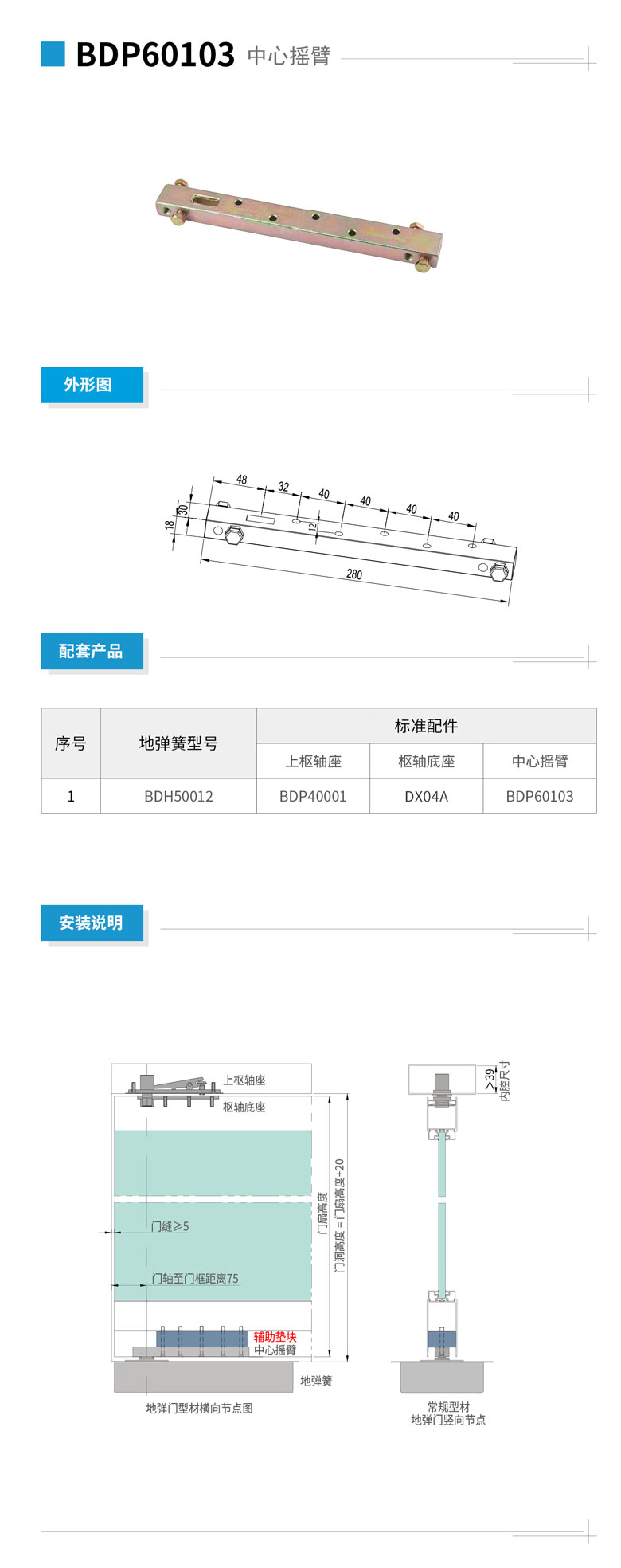 中心摇臂 BDP50203E\6°镀彩锌