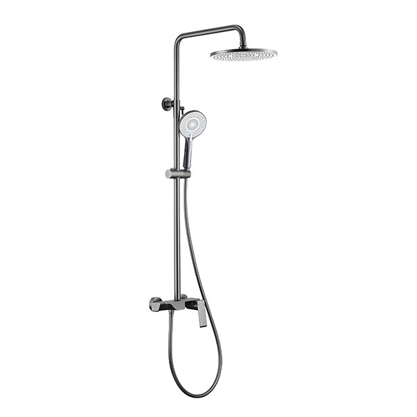 斯飞奥三功能淋浴套装 国标59铜 枪灰 10寸ABS圆形顶喷,多功能手持,下出水口,不锈钢花洒管 L3605ZS