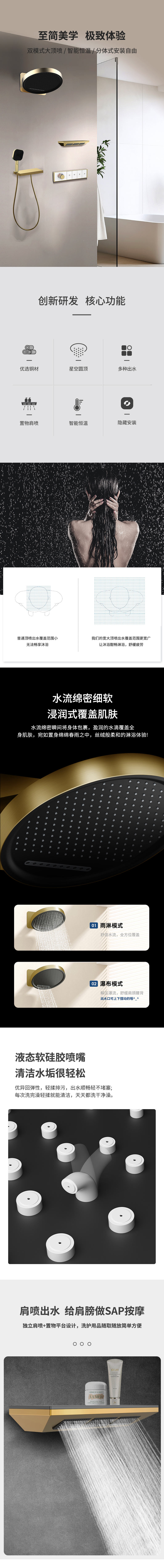 斯飞奥入墙式恒温两功能淋浴套装 黄铜 铬色 入墙阀体 9寸铜圆形顶喷 多功能ABS手持 铜支撑臂 PVC花洒管 T8891GE