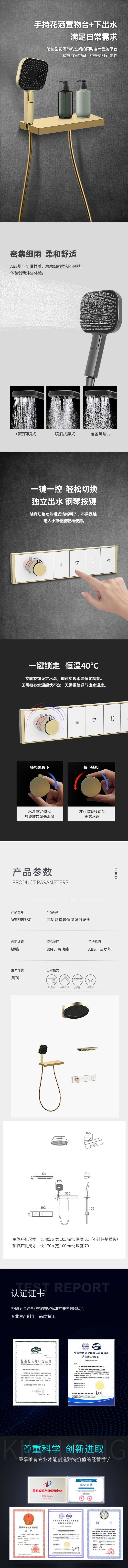 斯飞奥恒温单功能淋浴套装 黄铜 铬色 ABS花洒座 ABS多功能手持 T1131ZS