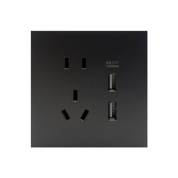 五孔双USB-充电式(亚朵灰) PC款 86*86mm 亚朵灰 GP-M91P-C23U2-Yydh
