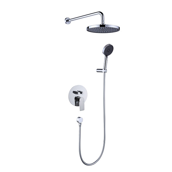 斯飞奥入墙式两功能淋浴套装 国标59铜 铬色 陶瓷阀芯,按键切换,240mmABS圆形顶喷,三功能ABS手持,铜淋浴管,铜墙座,铜进水座,PVC花洒管 L6261YF
