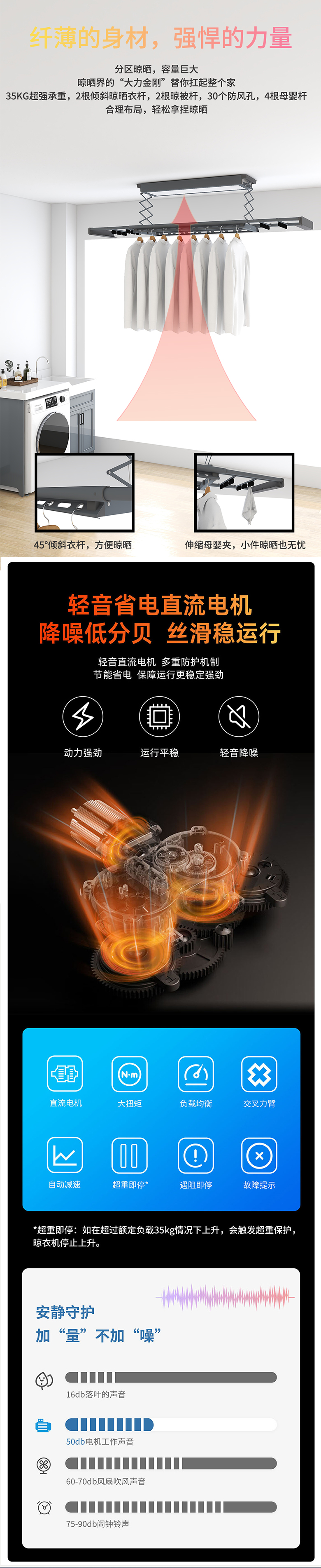 隐藏式晾衣机 主机0.79M-整杆0.8M-承重40KG-提升力35KG 铝合金 象牙白 JWLX1100-08Z
