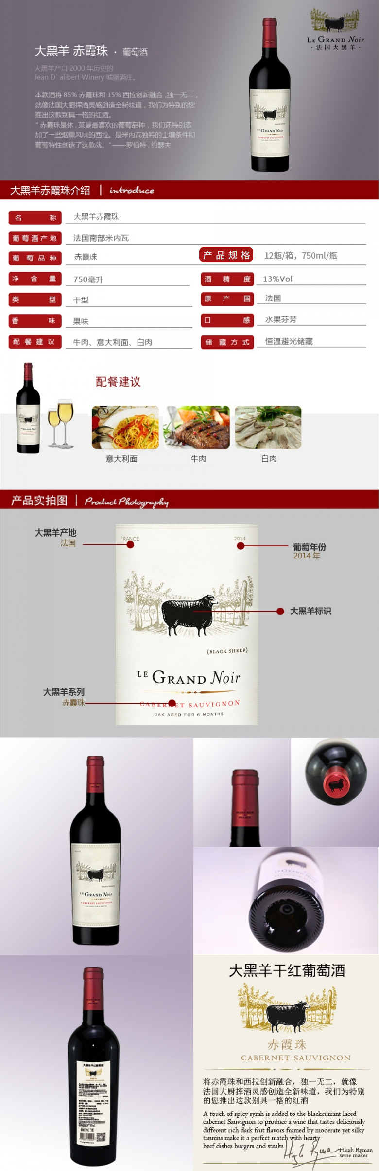 大黑羊 赤霞珠干红葡萄酒 750ml 红酒 CXJ-01