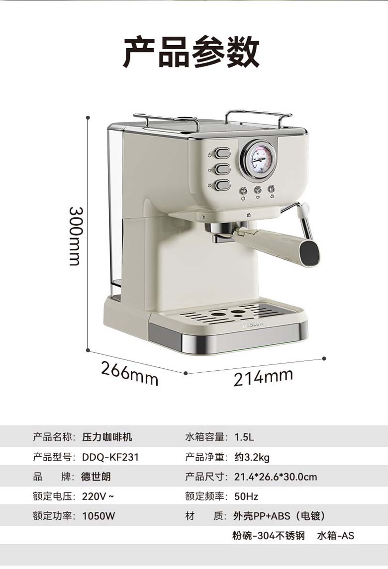 德世朗_压力咖啡机 1.25L DDQ-KF225