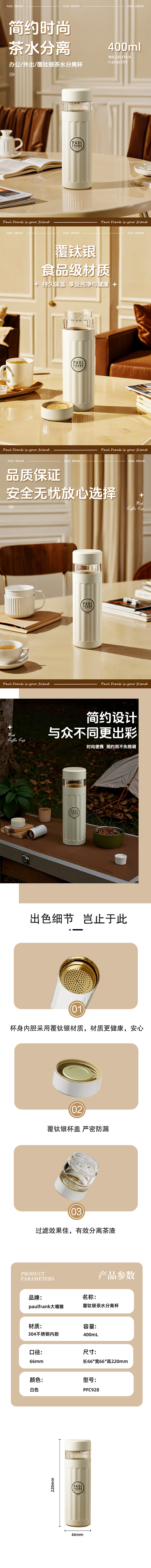 PaulFrank大嘴猴保温杯 600ML 316不锈钢 黑色 PFD095-BLack