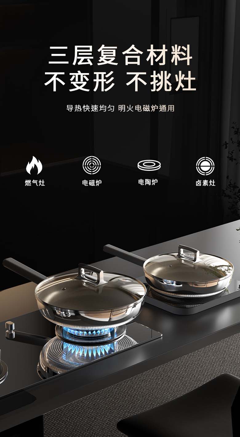 KOBACH聚能铸铁真不锈钢炒锅 32cm KGJ-C32G