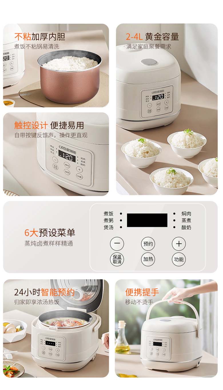 电饭煲 ORB-2113 欧锐铂两全其美双胆 2L+2L ORB-0688