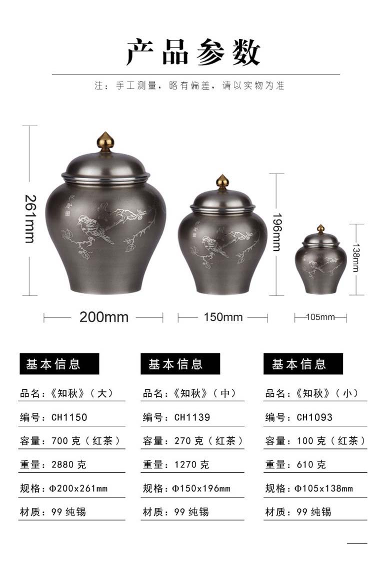 锡罐 CH1192 廖达锡器竹韵 φ88*85mm CXSY-0774