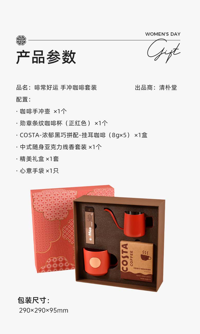 清朴堂 手冲咖啡套装 磨豆器*1+手冲咖啡滤杯*1+陶瓷咖啡杯*1+咖啡滤纸*1包+提盒*1 QPT-004