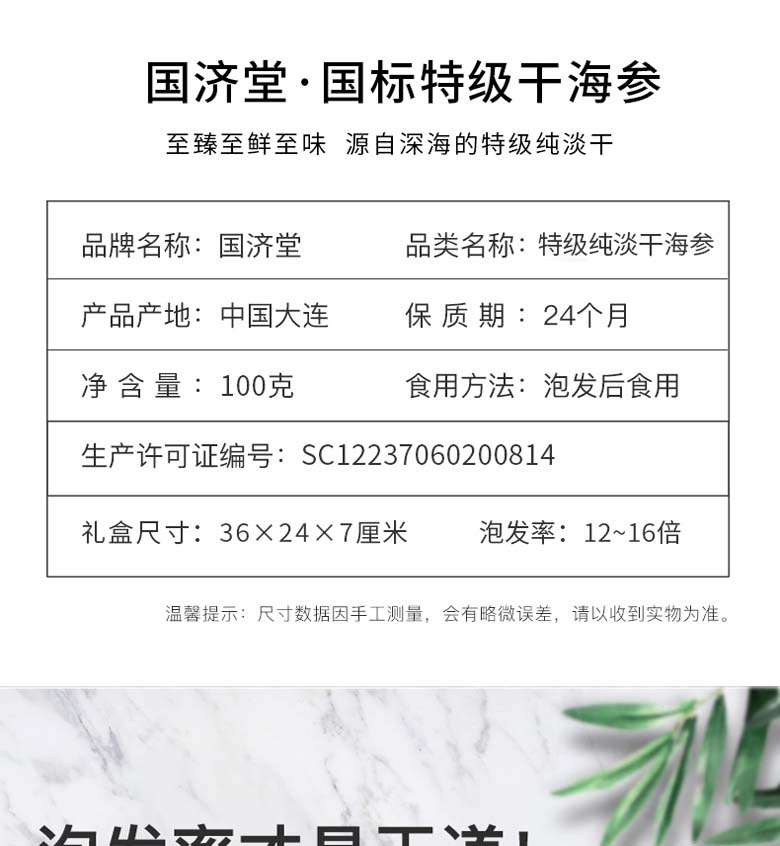 干货礼盒 福东海 WT100g 【本物系列】国标淡干辽参礼盒 AQWBC-FDH-0001