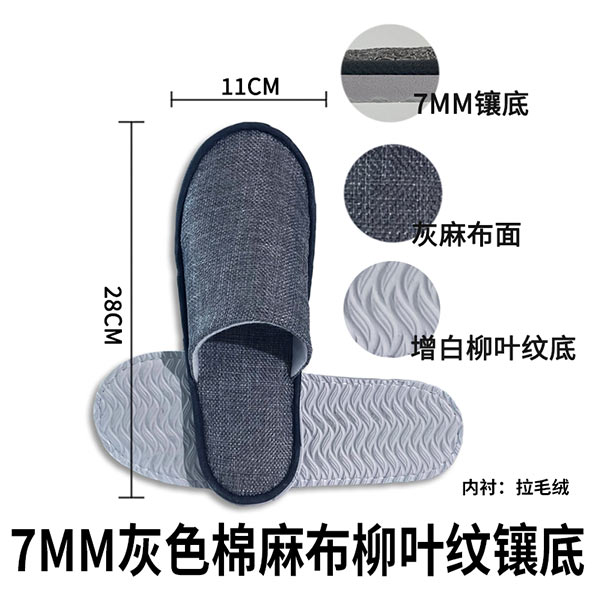 棉麻布拖鞋 L290*110MM 7mm柳叶纹平片镶底+13.5米拉毛绒+布条包边+灰色棉麻布+两把上 opp套袋 CQ-TX-035-PP