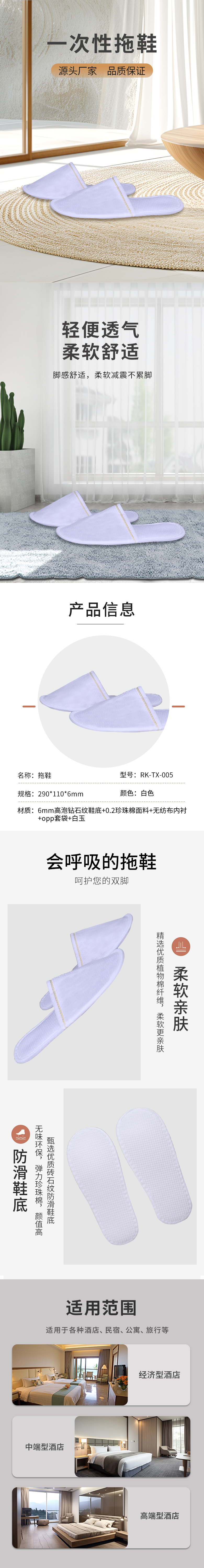 拖鞋 290*110MM 6mm高泡钻石纹鞋底+0.2珍珠棉面料+无纺布内衬+opp套袋+白玉 白色 RK-TX-005