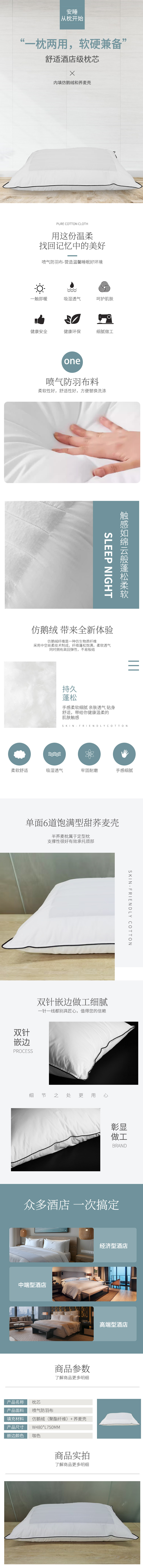 材质:喷气防羽布133*100+内填仿鹅绒+单面6道饱满型甜荞麦壳+1350g+双针嵌咖边