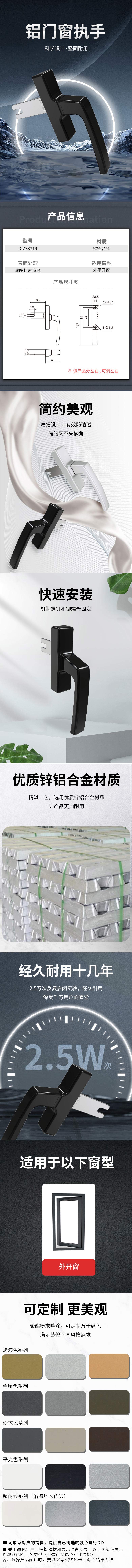 直把执手 铝合金 瓷晶黑 ZX-CZS2535