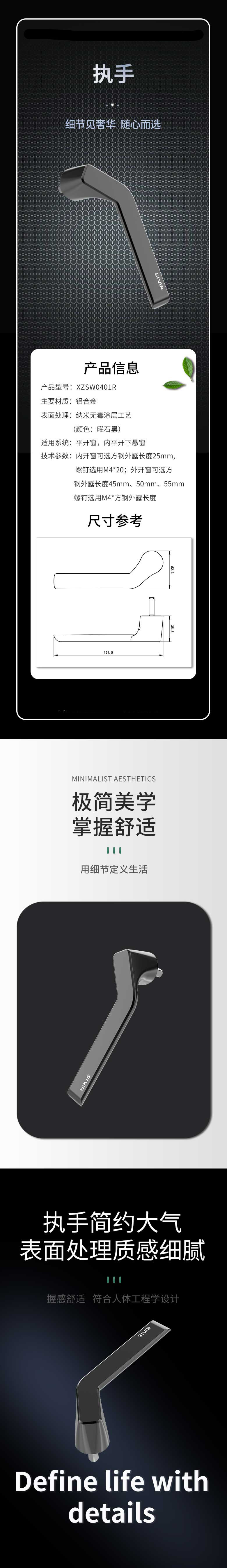 执手 铝合金 汽车级四重烤漆-骑士灰 琥珀银 XZS0301R