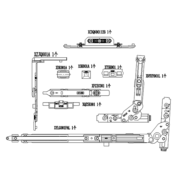 3+1式同向同步三扇联动配件 ZDTL31