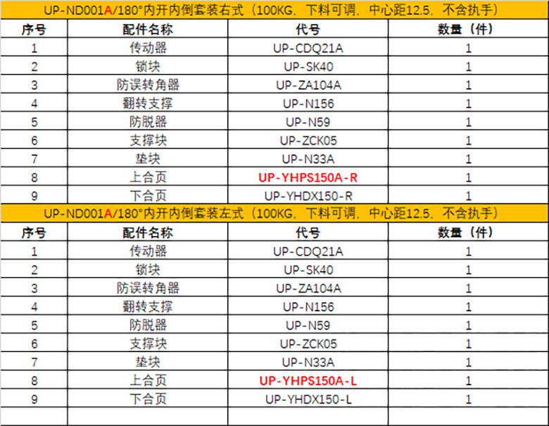 90°内开内倒成套包装 ZND100R-BH