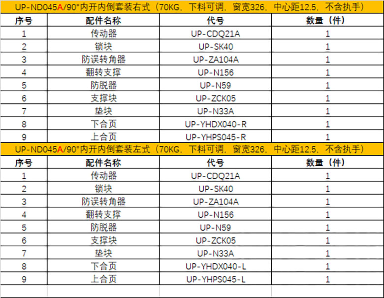 180°内开内倒套装(100KG 下料不可调 中心距12.5 不含执手)
