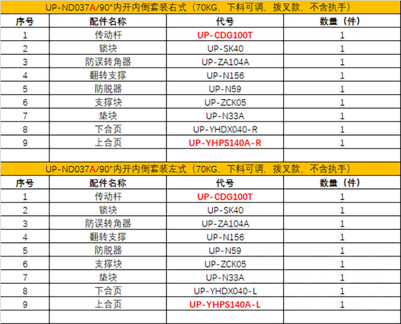 90°内开内倒成套包装 ZND100R-BX