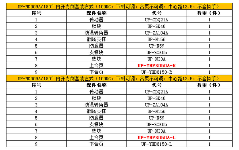 90°内开内倒套装(90KG 下料可调 中心距12.5 不含执手)