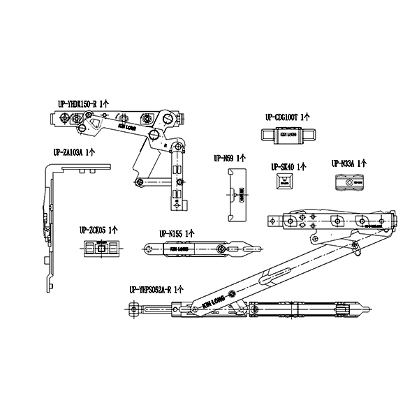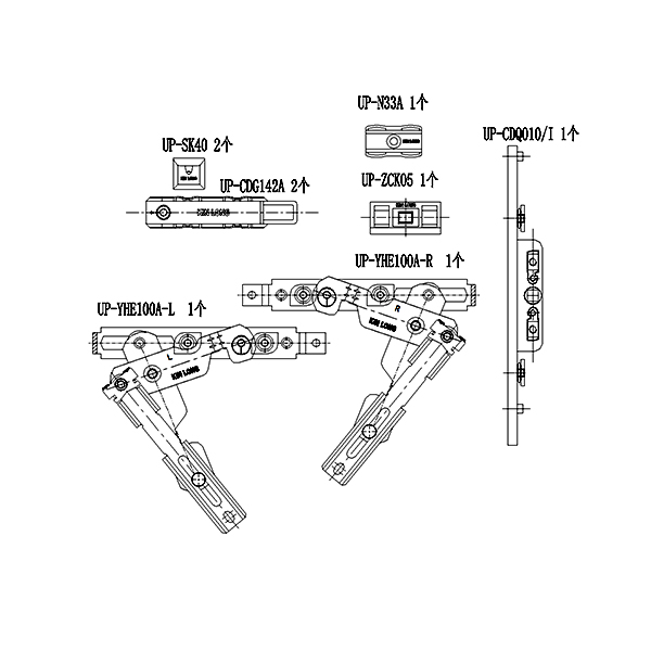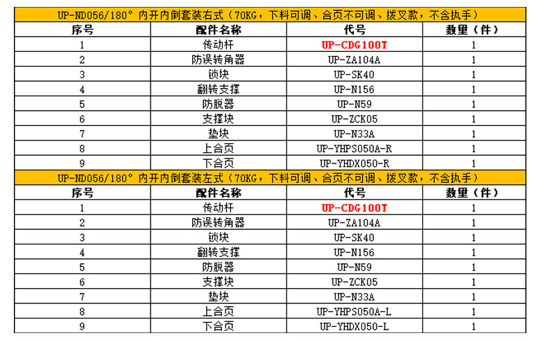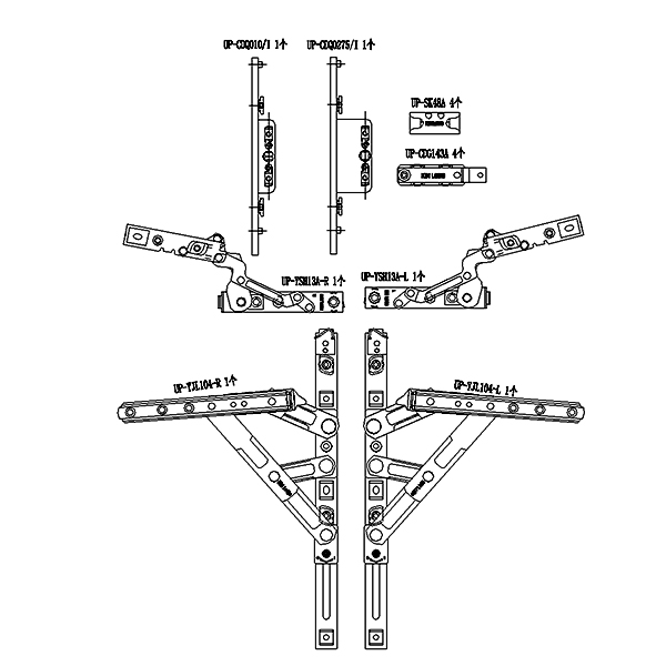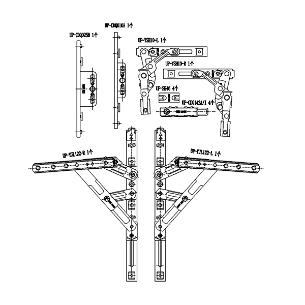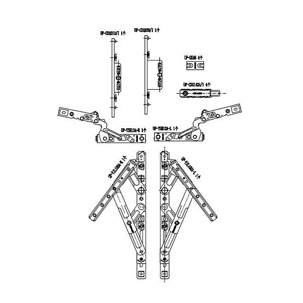 180°内开内倒套装(100KG 下料不可调 窗宽380 拨叉款 不含执手)