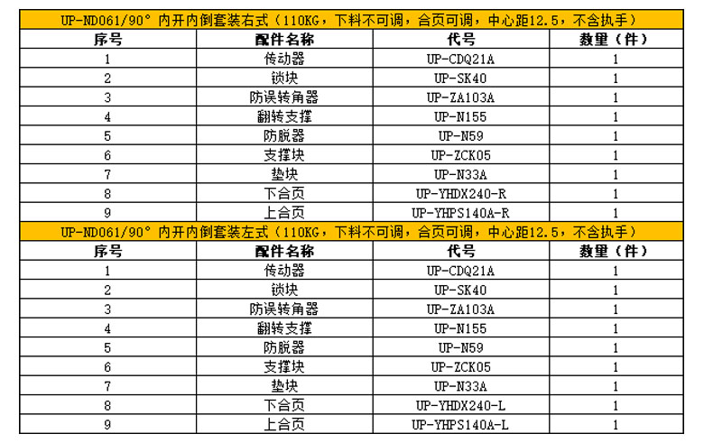 90°内平开窗套装(90KG 中心距10 单向 不含执手)