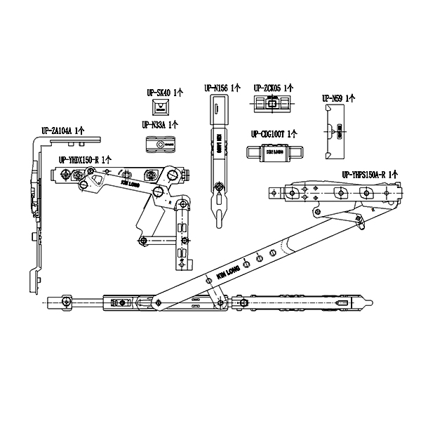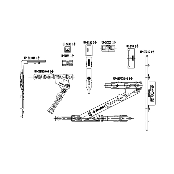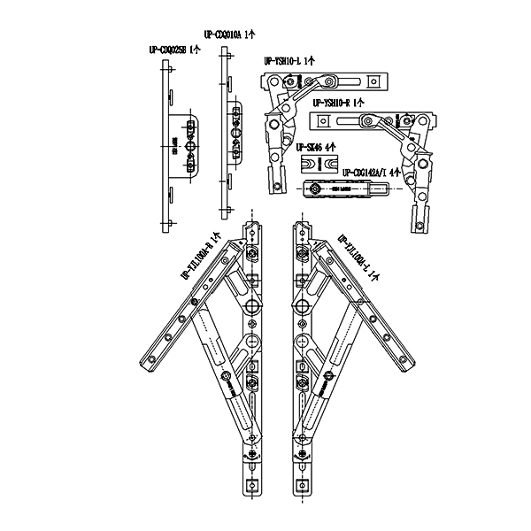 90°内开内倒套装(70KG 下料可调 窗宽326 中心距15 不含执手)