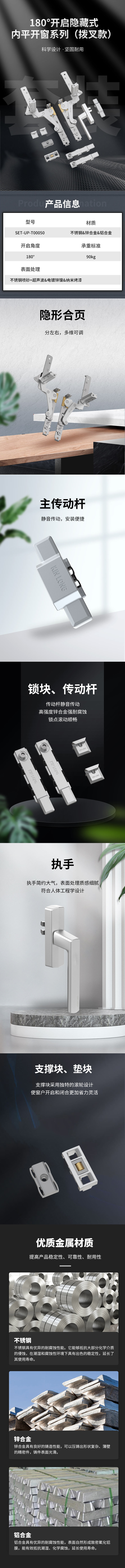 90°内开内倒套装(70KG 下料可调 窗宽326 中心距15 不含执手)